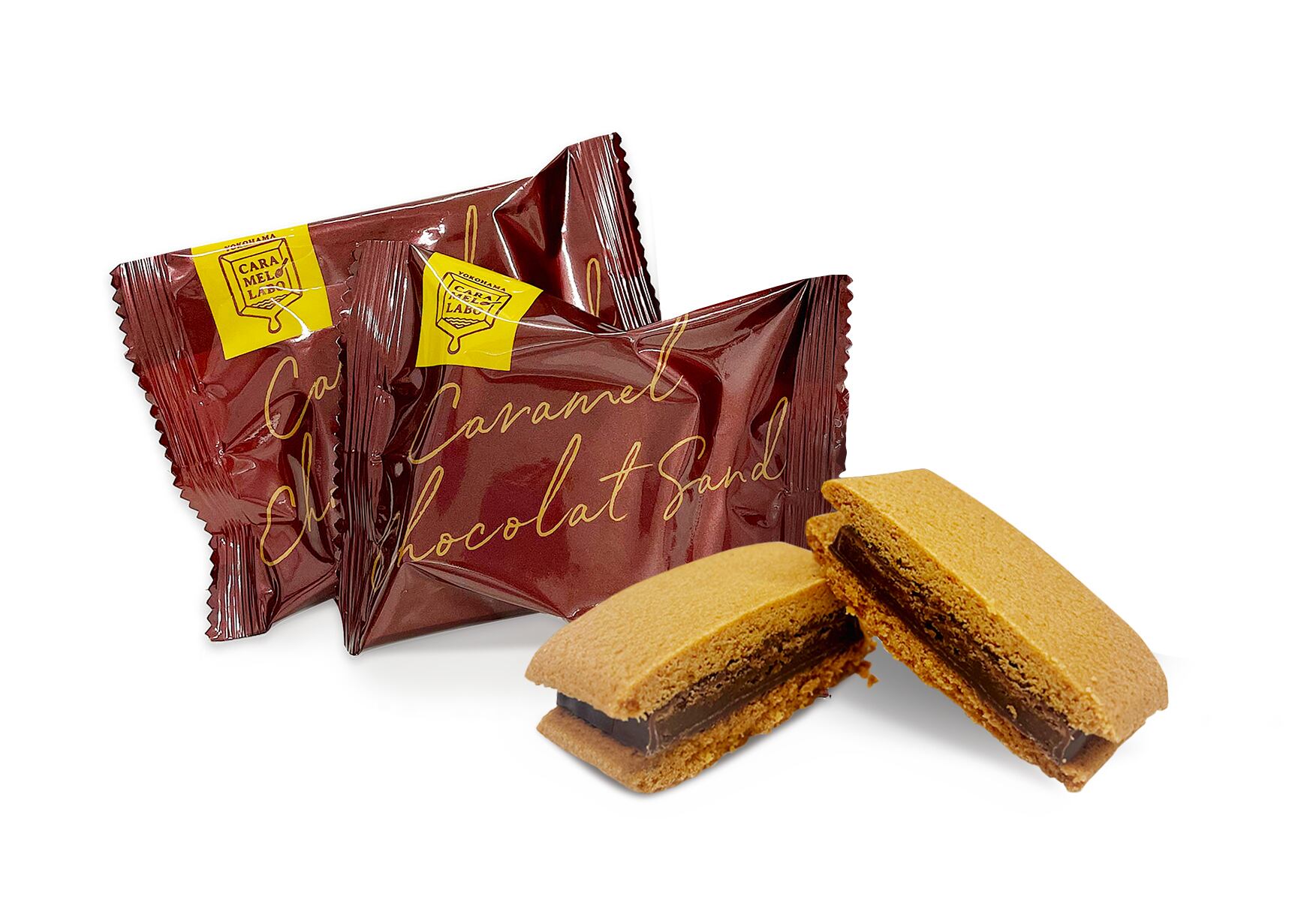 ・キャラメルとチョコレートをブレンドして低温でじっくり焼き上げたキャラメルフォンダンをミルクチョコレートコーティングし、オレンジ風味のサクサクのサブレでサンドしました。